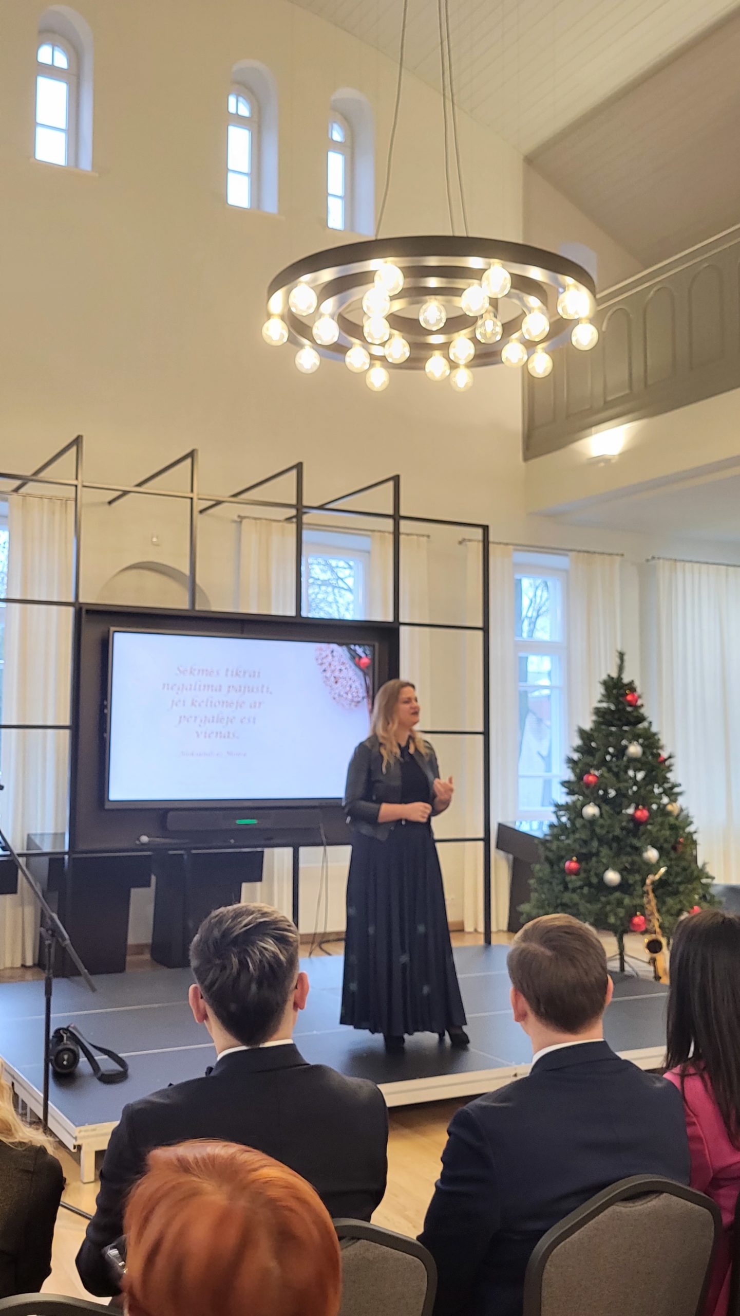 Nuoširdi, jauki šventė dovanojo puikias emocijas bei motyvacinį „užtaisą“ kitiems metams – klausėmės mūsų viešnios, psichologės-psichoterapeutės Jolantos Karvelienės trumpos, bet naudingos, uždegančios paskaitos.